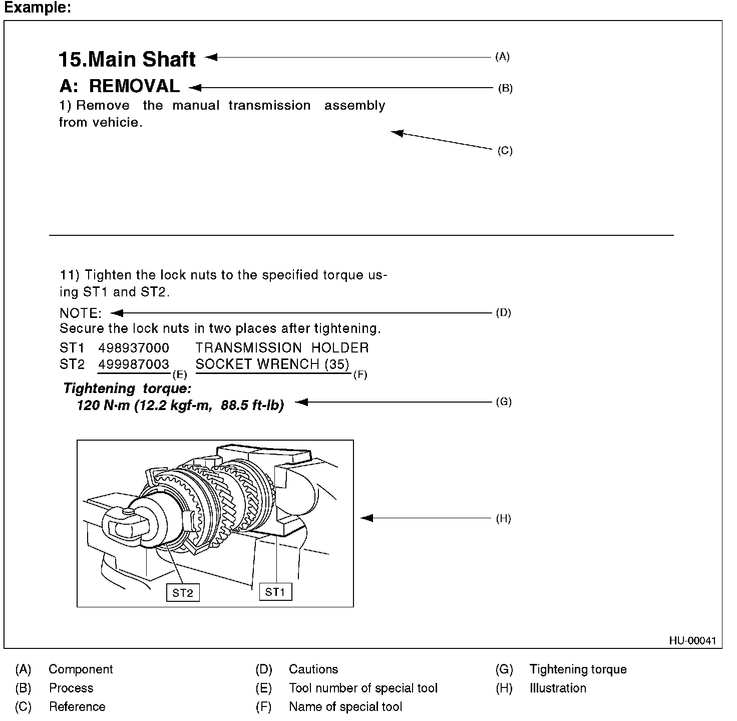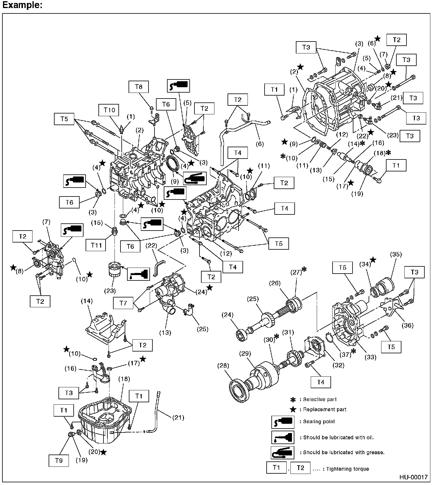 Illustrations are provided for each component. The information necessary for repair work (tightening torque, grease up points, etc.) is described on these illustrations. Information is described using symbol. To order parts, refer to parts catalogue.