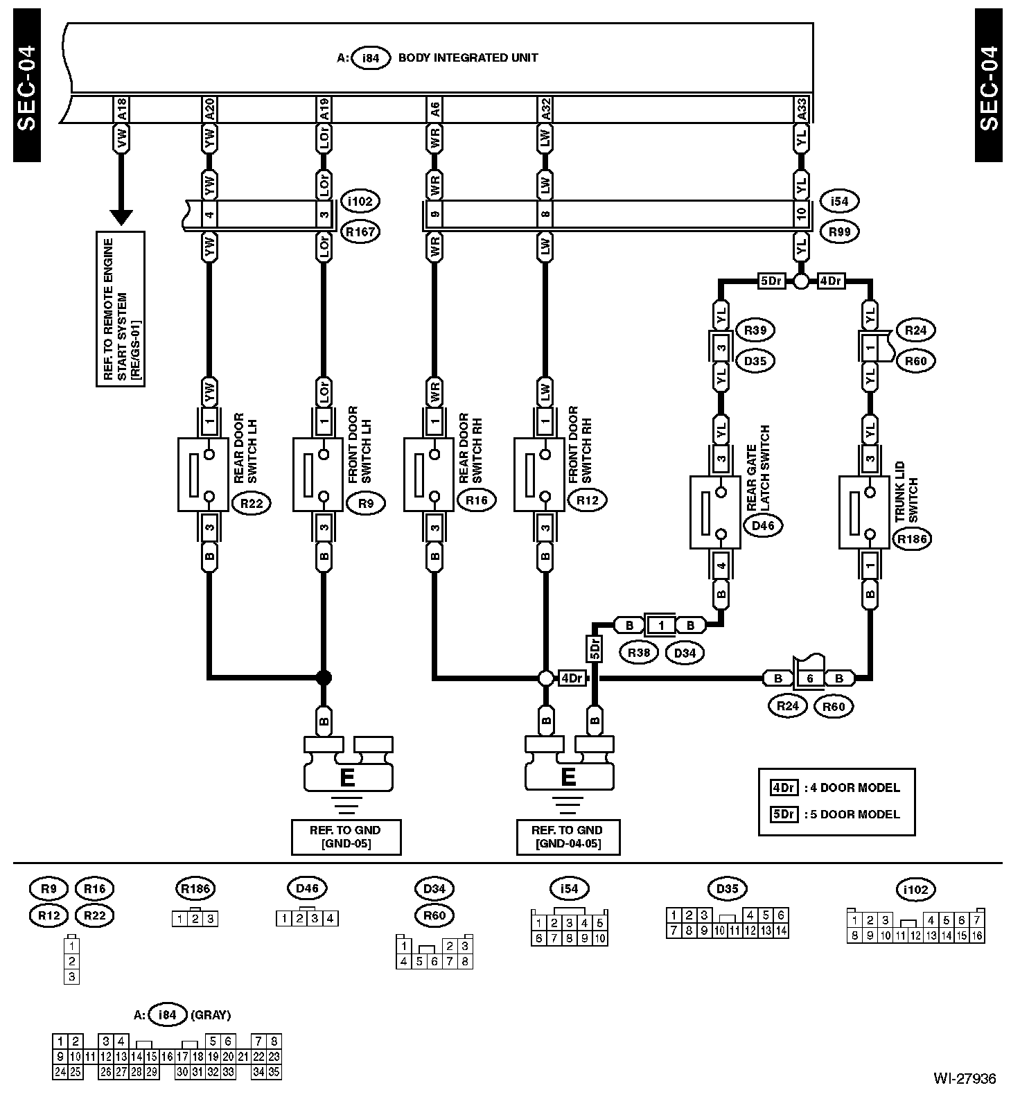 The locations of the Connectors or Grounds shown within these diagrams can be found via the connector or ground number at Vehicle Locations.