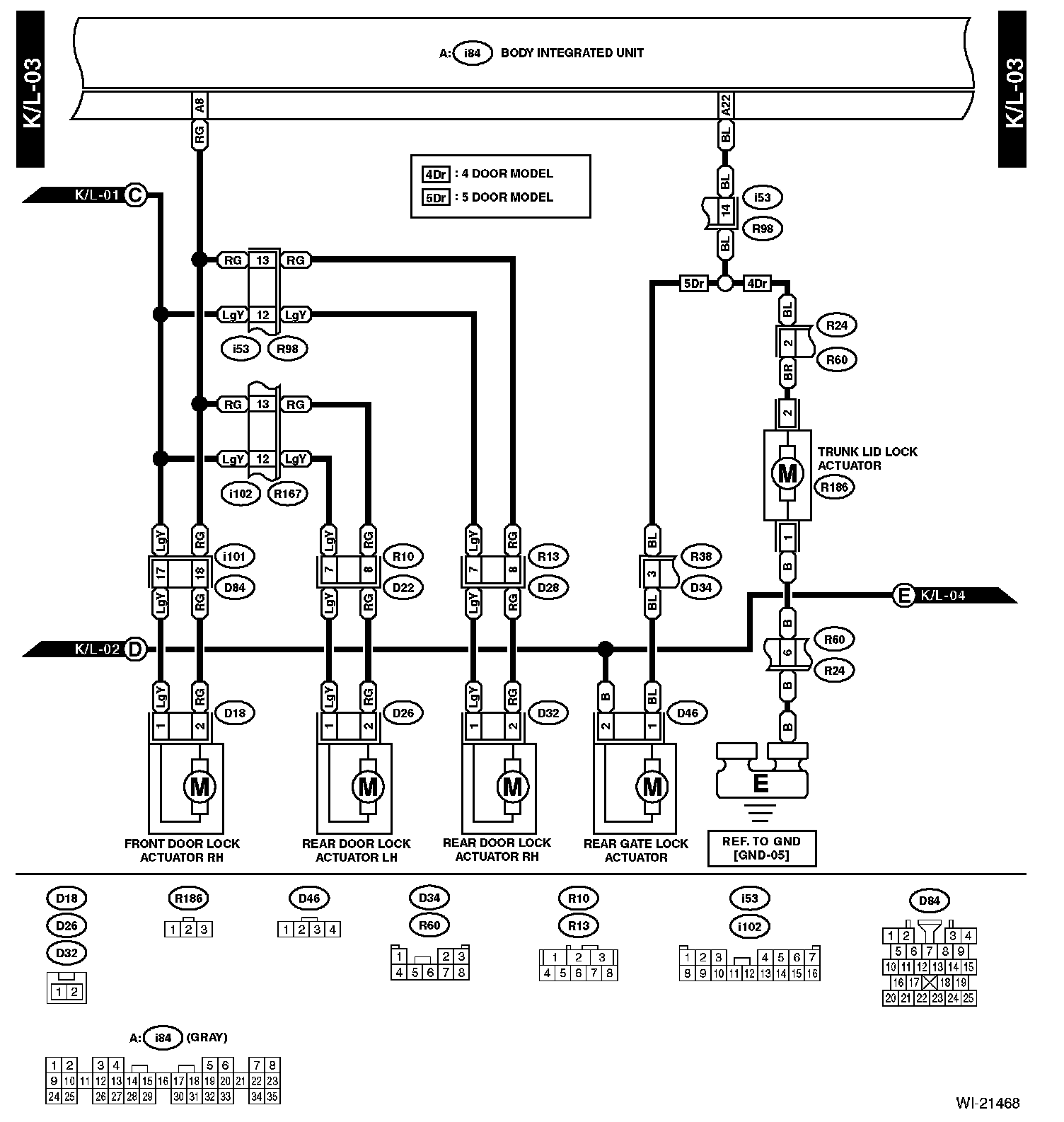 The locations of the Connectors or Grounds shown within these diagrams can be found via the connector or ground number at Vehicle Locations.