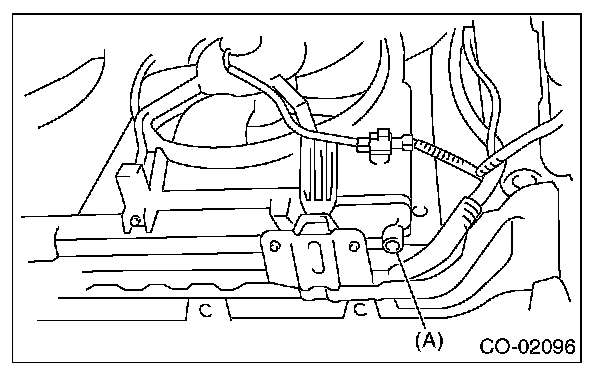 3) Remove the drain plug (A) to drain engine coolant into container.