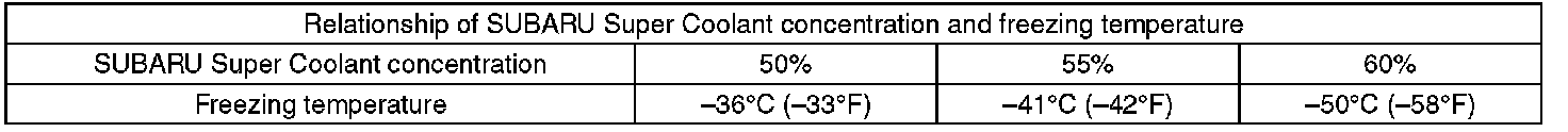 Use the SUBARU Super Coolant with a 50 - 60% concentration in order to obtain maximum antifreeze and anti-rust performance.