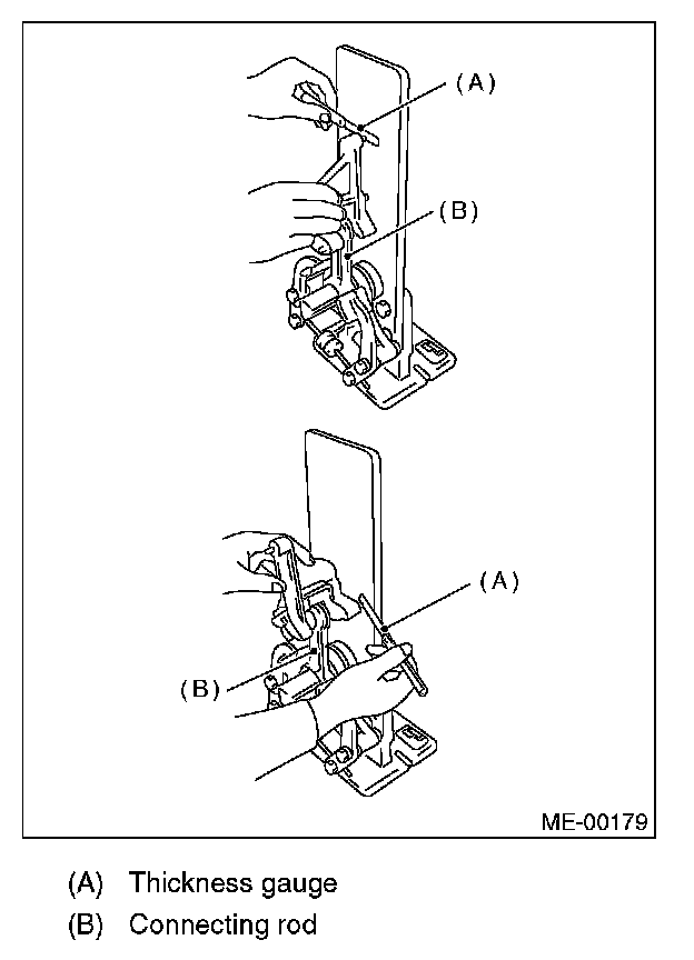 3) Install the connecting rod with bearings attached to the crankshaft, and measure the thrust clearance using a thickness gauge. If the thrust clearance exceeds the standard or uneven wear is found, replace the connecting rod.