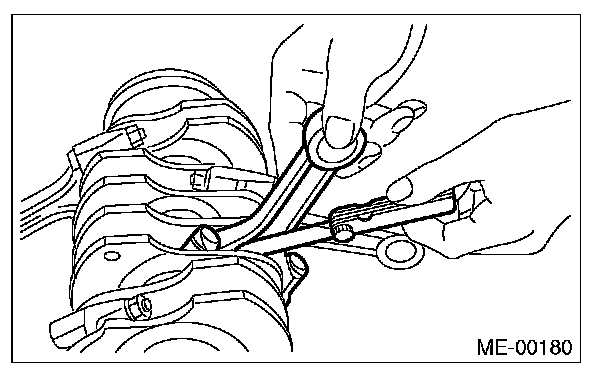 2) Check for bend or twist using a connecting rod aligner. Replace the connecting rod if the bend or twist exceeds the limit.