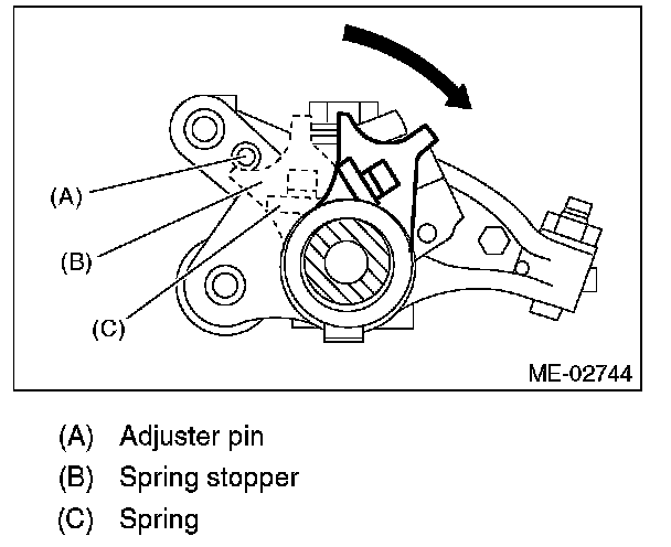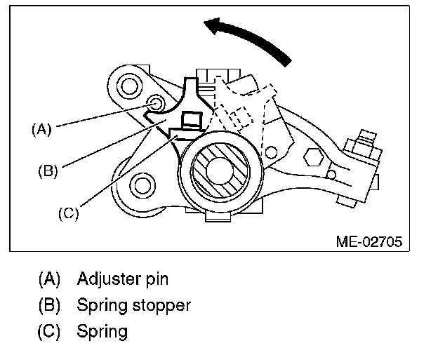 (1) Use the ST to rotate the spring stopper in the direction of the arrow to remove it from adjuster pin.