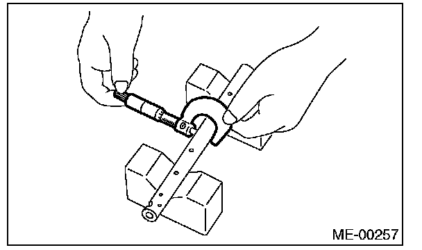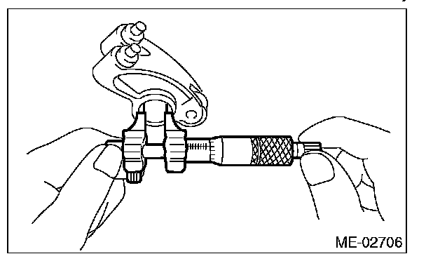 1) Measure the inner diameter of valve rocker arm and outer diameter of valve rocker shaft, and confirm the difference (oil clearance) between the two values.