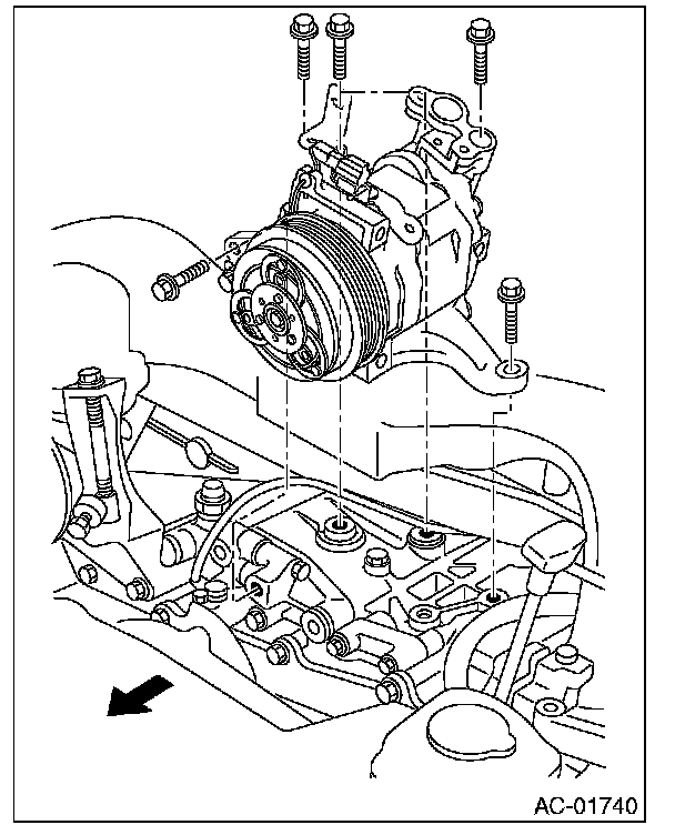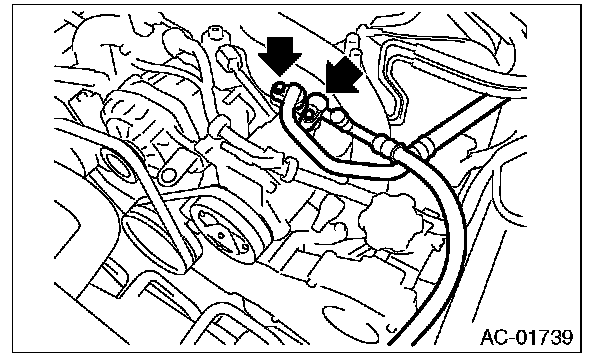 2. Replace the O-rings on low/high pressure hoses with new parts, and apply compressor oil.