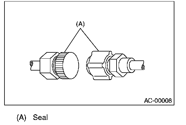 When replacing or installing/removing A/C parts, immediately isolate the oil from atmosphere using a plug or tape. In order to avoid moisture, store the oil in a container with its cap tightly closed.