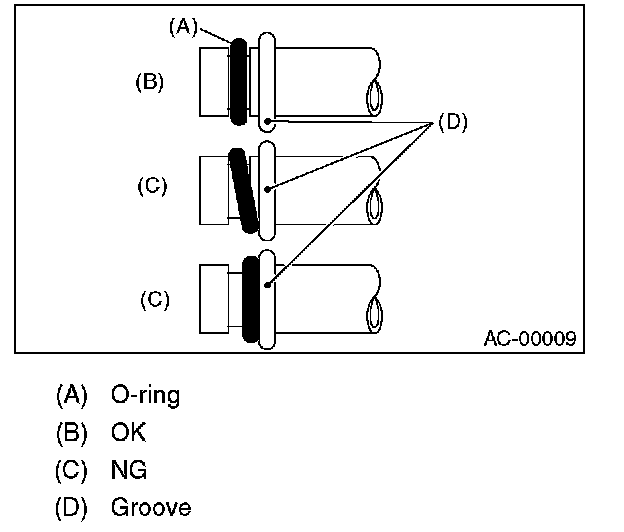 - Visually check the surfaces and mating surfaces of O-rings, threads and connecting points. If a failure is found, replace the applicable parts.