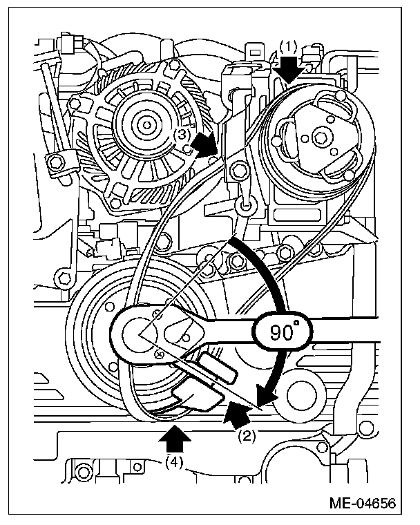 (1) The rib of the rear side belt is securely placed on the groove of the A/C compressor pulley.