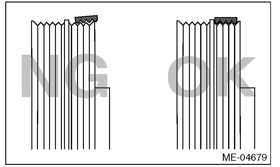 ^ Be careful not to let oil, grease or coolant contact a new rear side belt.
