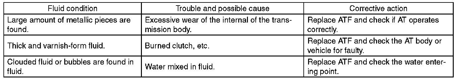 When replacing ATF, check the inside condition of transmission body by inspecting the drained ATF.