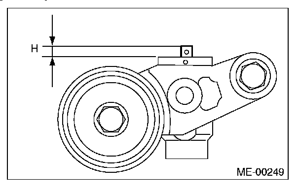 4) Measure the amount of adjuster rod protrusion "H" from the end surface of the cylinder. If it is not within specifications, replace the automatic belt tension adjuster assembly with a new part.