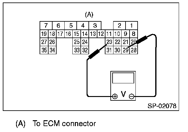 6. Measure the voltage between ECM connector terminals.