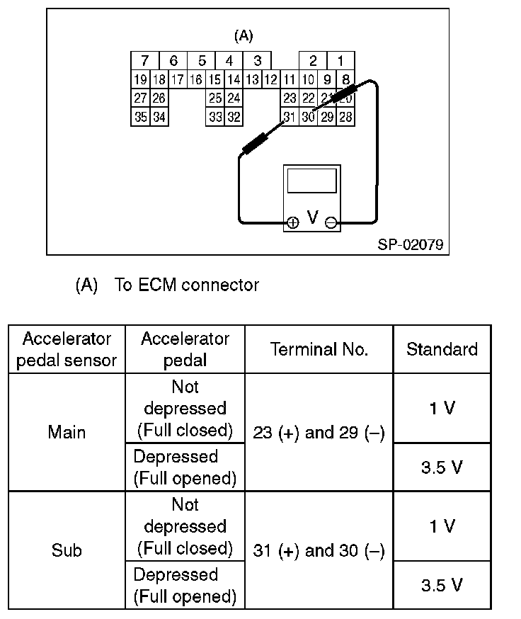 1. CHECK ACCELERATOR PEDAL SENSOR AREA (METHOD WITH CIRCUIT TESTER)