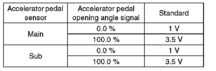 2. Read the accelerator pedal opening angle signal and voltage of accelerator pedal sensor using Subaru Select Monitor. Subaru Select Monitor