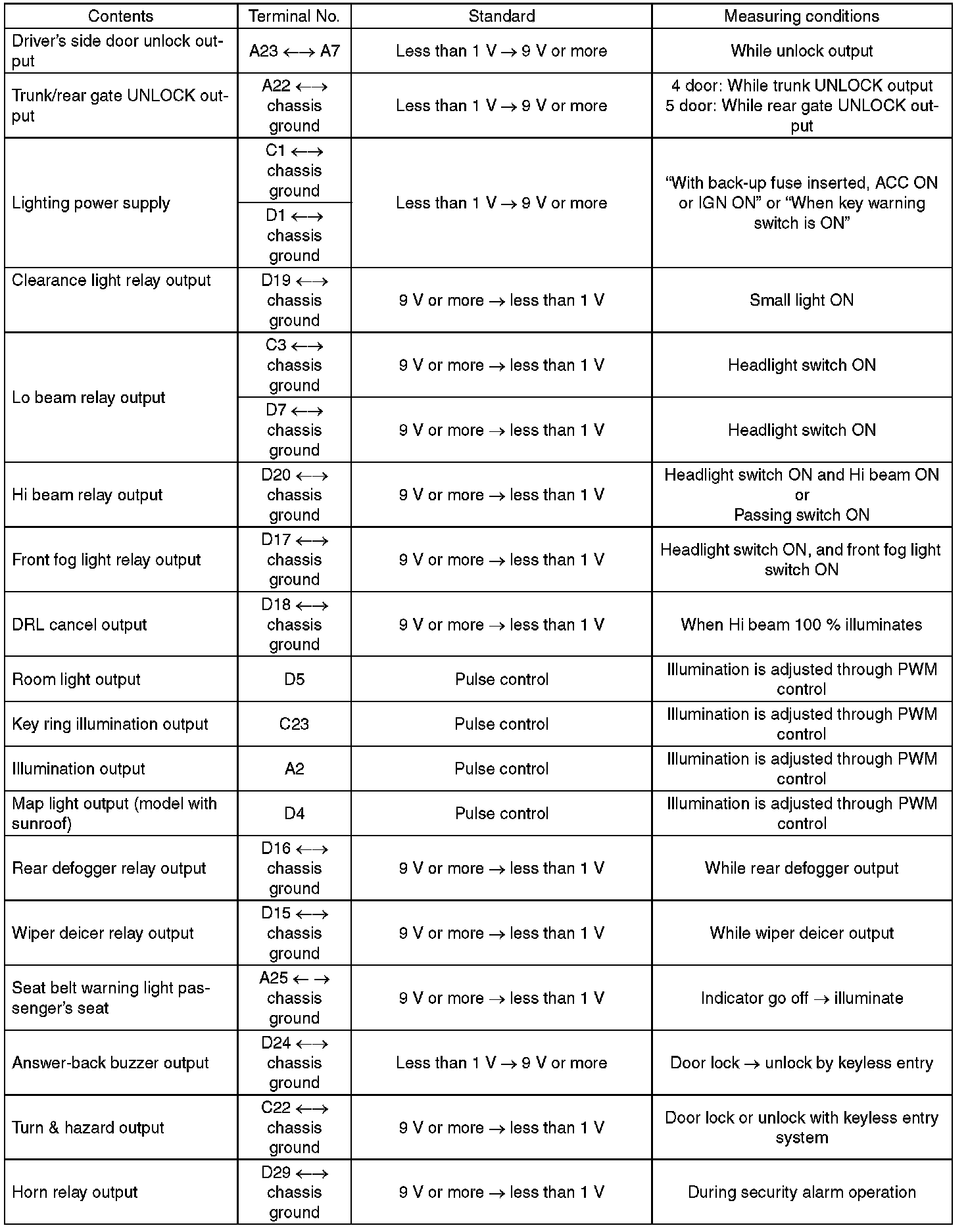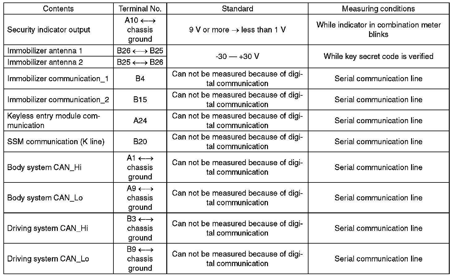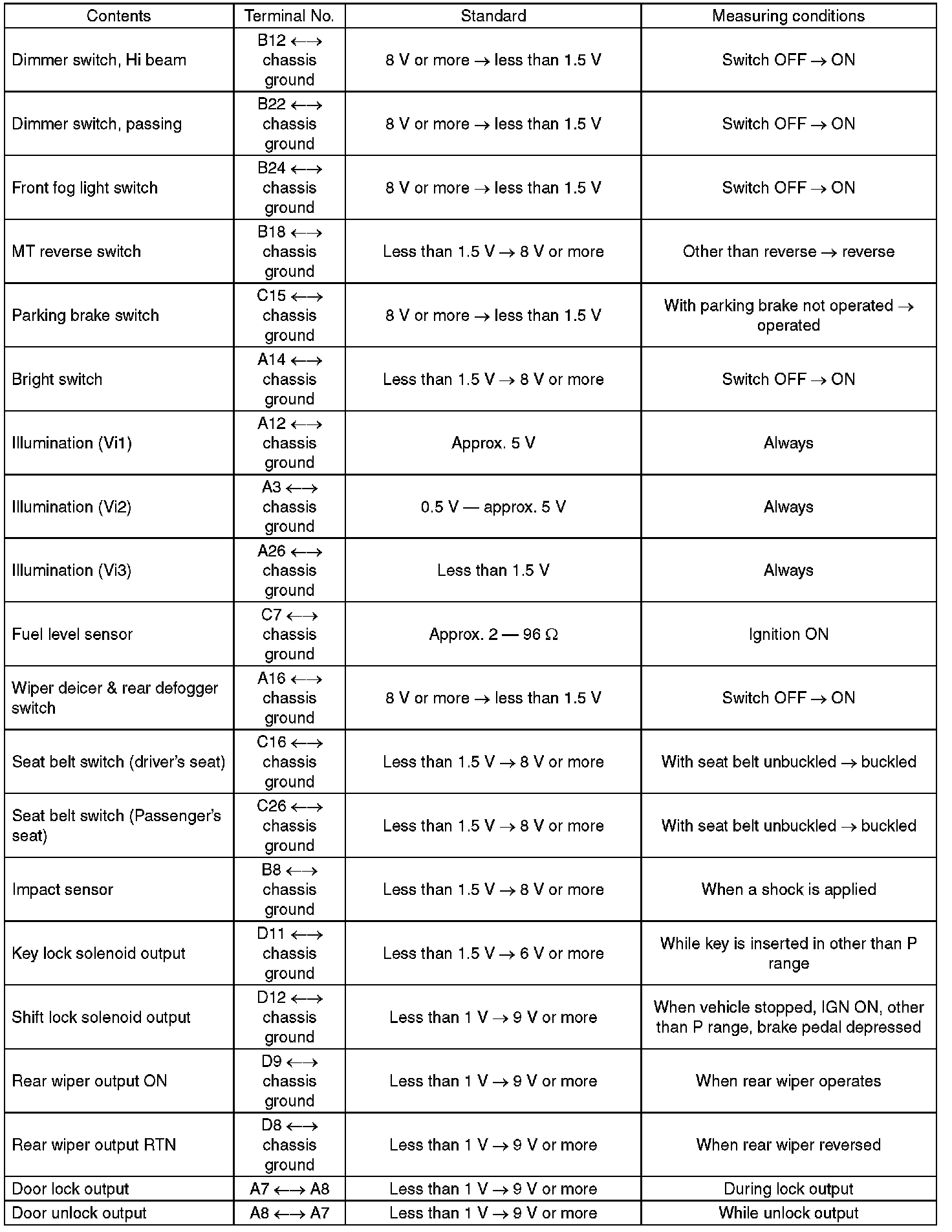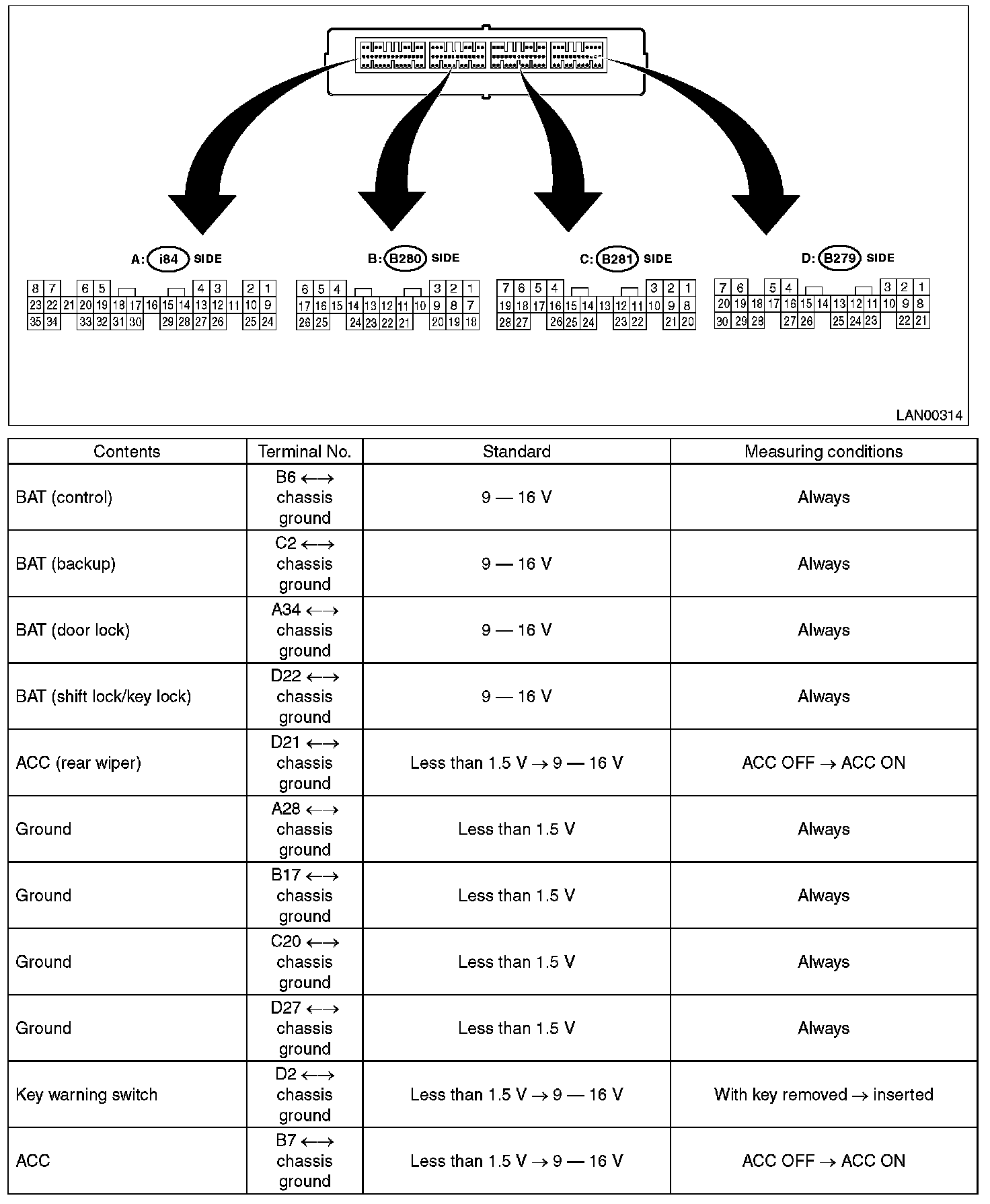 Pinout Values and Diagnostic Parameters