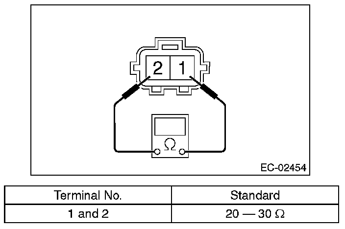 2. Check the resistance between the pressure control solenoid valve terminals.