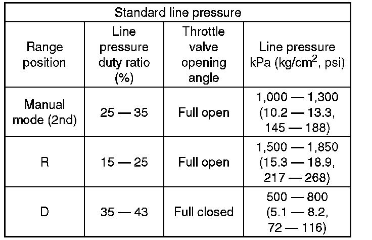 1) Line pressure measurement (under no load):