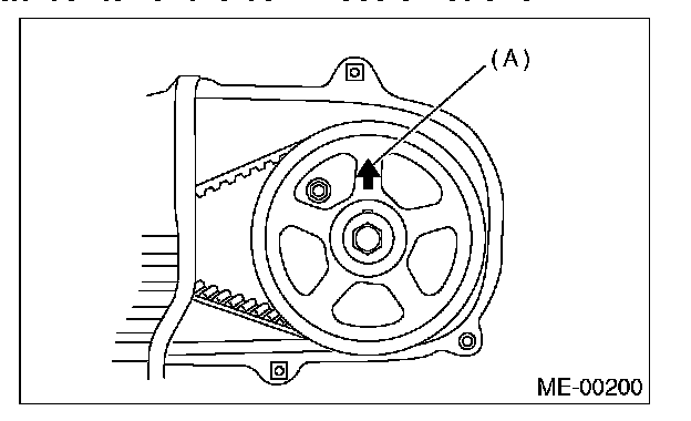 When the arrow mark (A) on cam sprocket LH is at the top position, the #1 cylinder piston is at top dead center of the compression stroke.