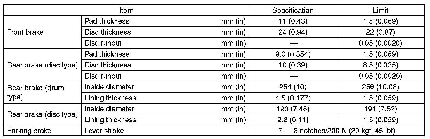 Refer to Parking brake specifications.