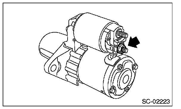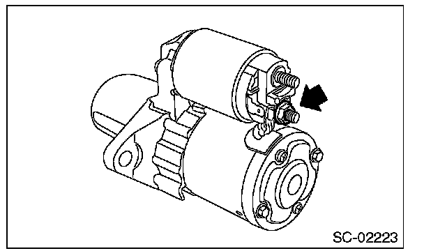 1. Remove the nuts fastening the terminal M of the magnet switch assembly, and disconnect the cable from the terminal M.