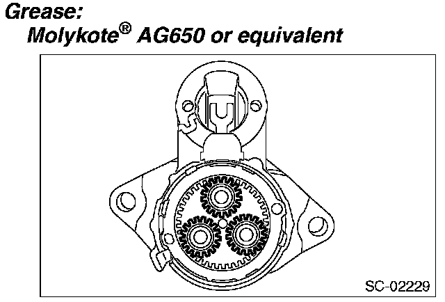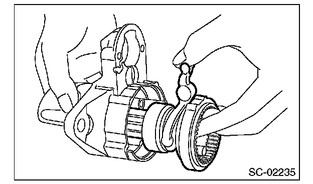 4. Assemble the overrunning clutch, internal gear assembly, shaft and shift lever as a single unit into the starter housing assembly.