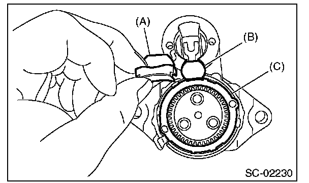 6. Install seal rubber (A), plate (B), and seal rubber (C).