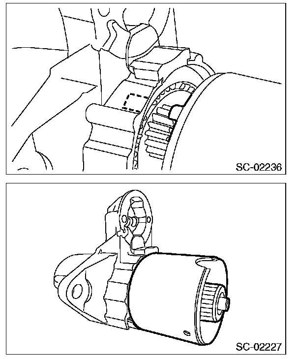 NOTE: As shown in the figure, match the protrusion of the yoke assembly to the cut out of the starter housing assembly.