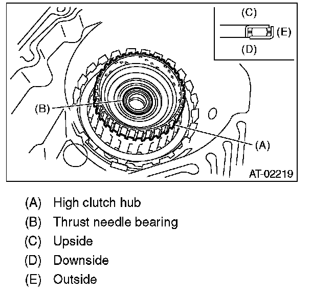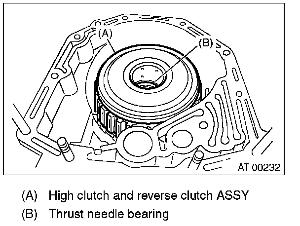 12) Take out the high clutch hub and thrust needle bearing.