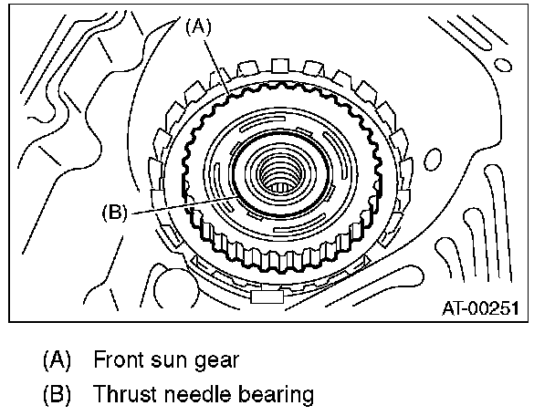 29) Install the front sun gear and the thrust needle bearing.