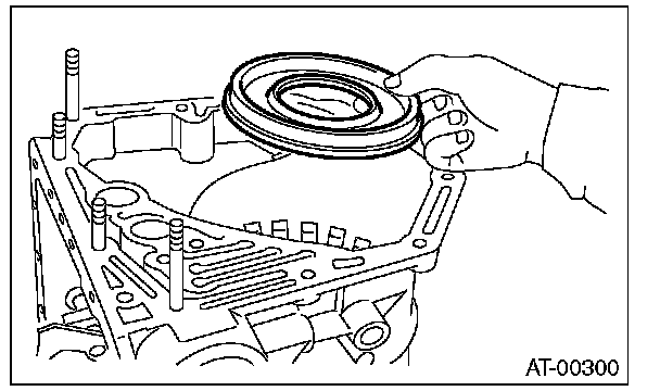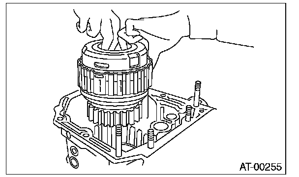 Install carefully while rotating the low clutch and planetary gear assembly slowly, being careful not to damage the seal ring.