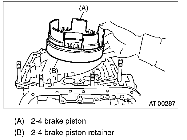 20) Remove the 2-4 brake piston and 2-4 brake piston retainer while taking care not to damage them.