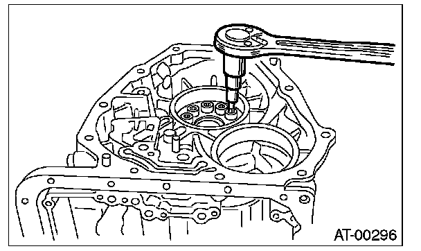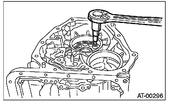 24) Turn the transmission case upside down, and then take out the socket bolts while holding the one-way clutch inner race by hand.