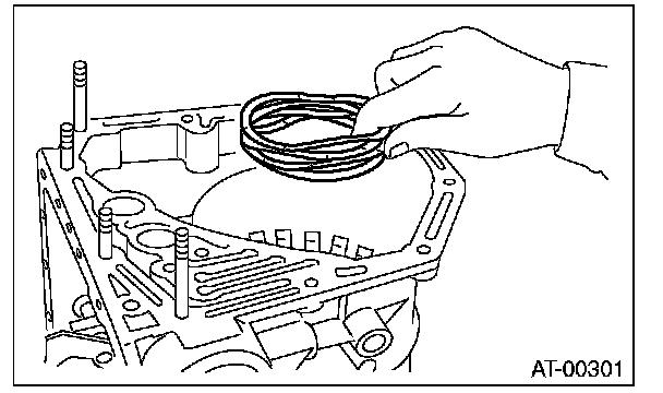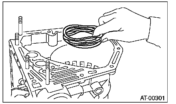 1) Apply ATF to the lip, and install the low & reverse brake piston.