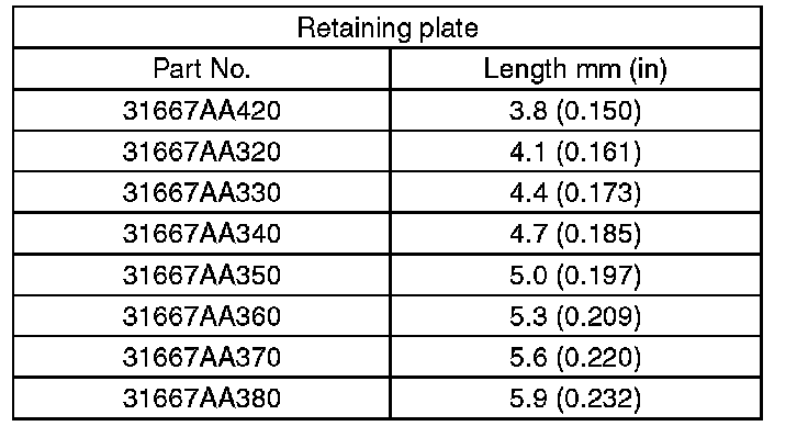 Calculate with A and B dimensions recorded before. If the calculated value exceeds the service limits, replace the drive plate and select and adjust the retaining plate to be within standard values.