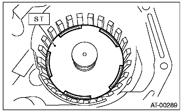 21) Position the snap ring in the transmission. Using ST, press the snap ring into the specified location.