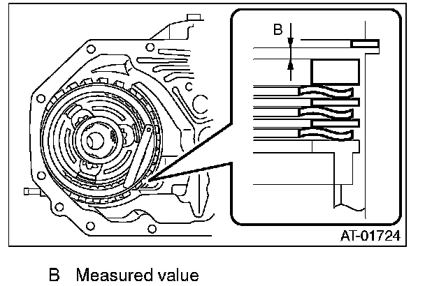 (1) Measure clearance "B" between the retaining plate and snap ring.