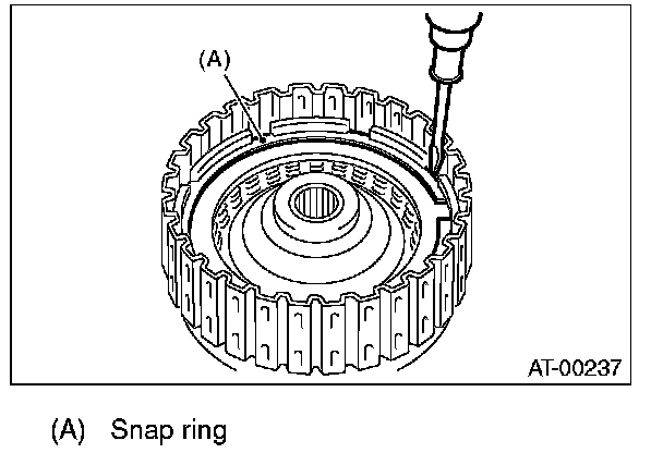 10) Install the snap ring to high clutch drum.