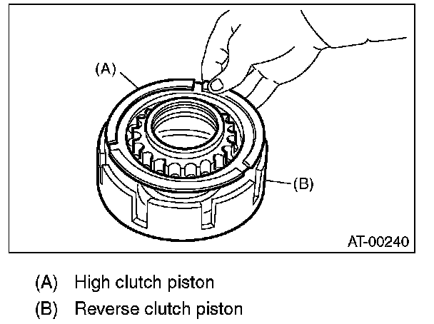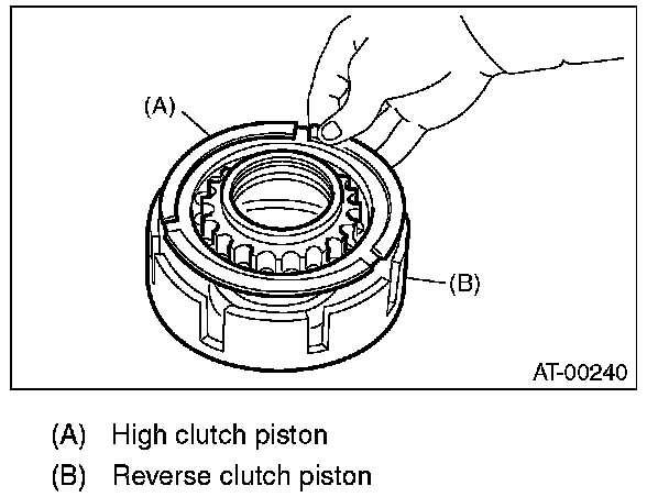 2) Install the high clutch piston to the reverse clutch piston.