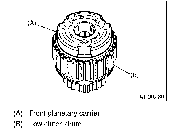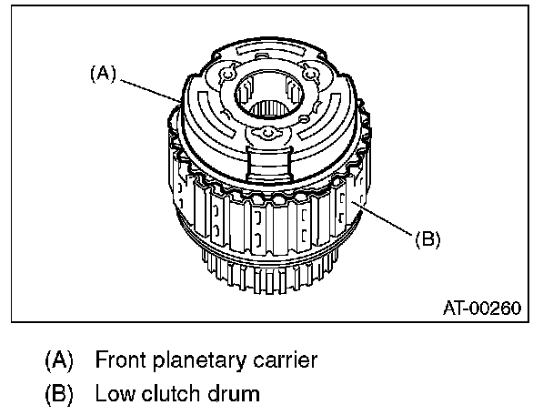 17) Install the front planetary carrier to the low clutch drum.