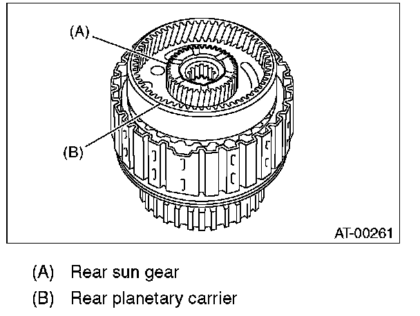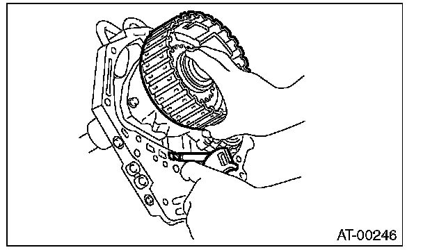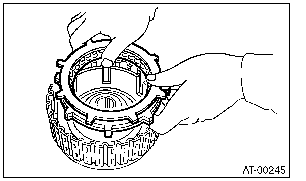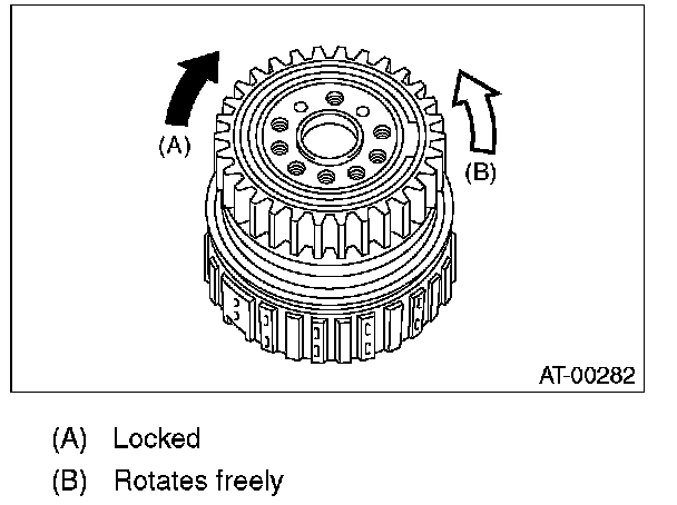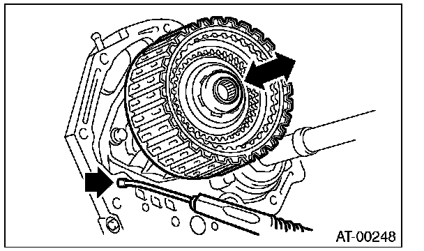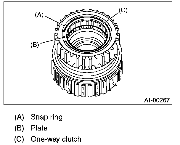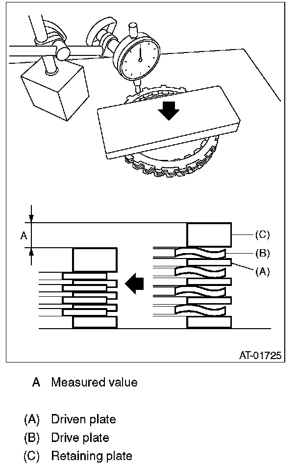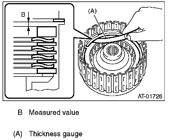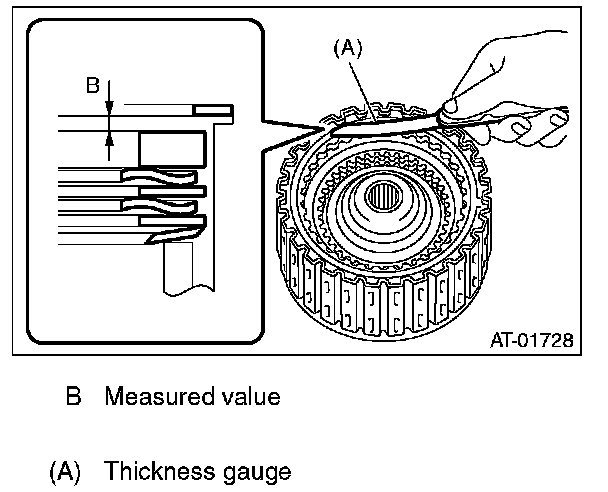 (1) Measure clearance "B" between the retaining plate and snap ring. (High clutch) At this time, do not press down the retaining plate.