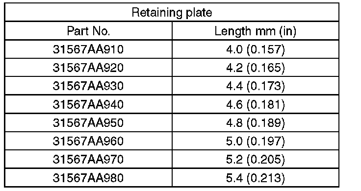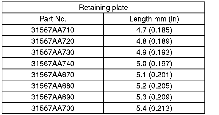 Calculate with A and B dimensions recorded before. If the calculated value exceeds the service limits, replace the drive plate and select and adjust the retaining plate to be within initial standard values.