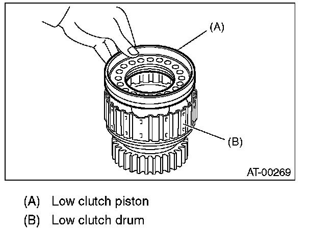 2) Install the low clutch piston to low clutch drum.