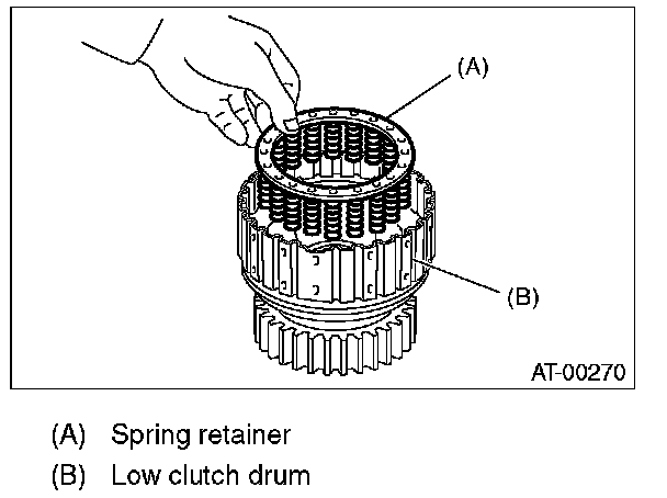 3) Install the spring retainer to low clutch piston.