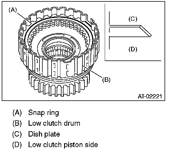 1) Remove the snap ring from low clutch drum.