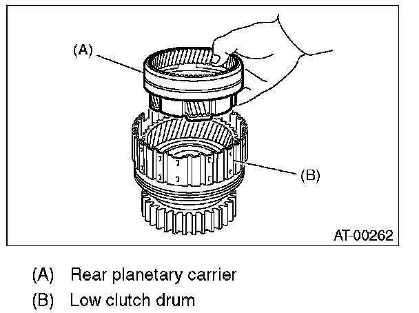 13) Install the rear planetary carrier to the low clutch drum.
