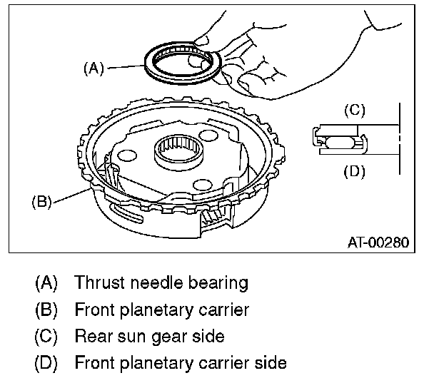 16) Install the thrust needle bearing in the correct direction.