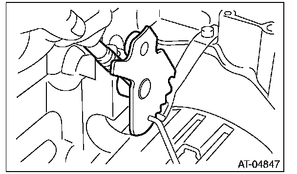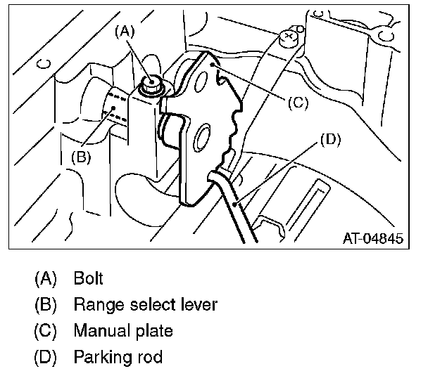 12) Remove the bolts securing select lever, and then remove the select lever, manual plate and parking rod.