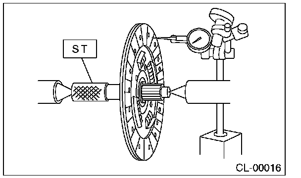 If deflection exceeds the specified value at the outer circumference of the facing, replace the clutch disc.