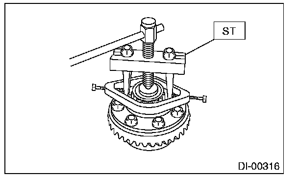 8) Remove the bearing cone using the ST.